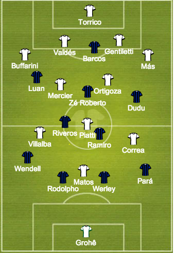 Na volta, Enderson mudou, optando por sacar Edinho do time para ter mais um homem à frente, no caso, Dudu. Foi o princípio do 4-2-3-1 que viria a se estabelecer no clube mais tarde. Com Dudu aberto do lado direito, Luan na esquerda e Zé Roberto centralizado, o meio ficou mais preenchido, deixando o time mais encorpado no setor. Entretanto, nem Luan nem Dudu encostavam em Barcos, que tinha que se virar sozinho na frente, geralmente recebendo o combate de dois adversários. O Grêmio venceu por 1 a 0 no tempo regulamentar e teve chances para resolver a partida, mas desperdiçou suas chances e acabou caindo nas penalidades.